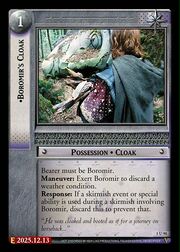 This page defines the card data as used on the main Data:Boromir's Cloak (1U98) article. Only edit the information on this page if there is an obvious typo or if you otherwise know what you're doing.