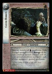 This page defines the card data as used on the main Data:Clever Hobbits (7U54) article. Only edit the information on this page if there is an obvious typo or if you otherwise know what you're doing.