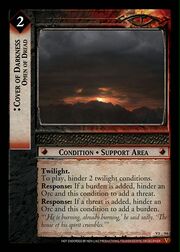Twilight.To play, hinder 2 twilight conditions.Response: If a burden is added, hinder an Orc and this condition to add a threat.Response: If a threat is added, hinder an Orc and this condition to add a burden.