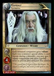 This page defines the card data as used on the main Data:Gandalf, Lathspell (V2 13) article. Only edit the information on this page if there is an obvious typo or if you otherwise know what you're doing.