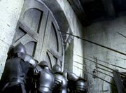 Fortification.Maneuver: If this is in your support area, exert and hinder 2 unbound knights to transfer this to a minion. Hinder that minion.