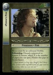 Bearer must be an unbound Hobbit. Fellowship: Discard a pipeweed to remove X threats, where X is the number of pipes you can spot. Hinder this pipe or hinder bearer.