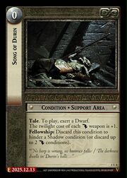 This page defines the card data as used on the main Data:Song of Durin (3U5) article. Only edit the information on this page if there is an obvious typo or if you otherwise know what you're doing.