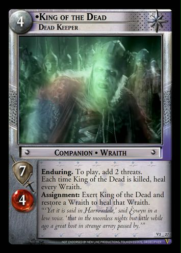 Each time King of the Dead is killed, heal every Wraith. Assignment: Exert King of the Dead and restore a Wraith to heal that Wraith. |