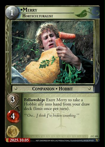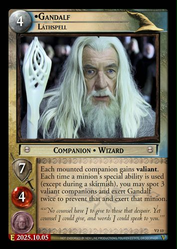 A few rough edges from V2 were sanded down. The Home-3 allies had their vitality reduced and some Isengard anti-ally options were improved. GOTM was altered in line of Legacy Ruling 1, which was one of 3 rulings that went out with this errata batch.