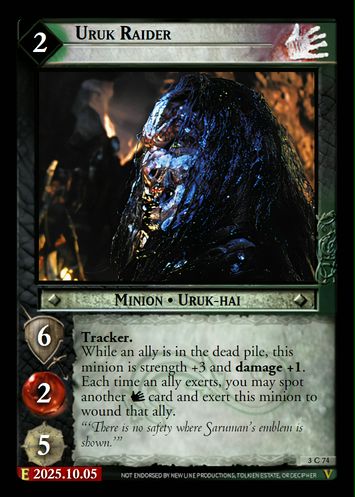 Several issues had lingered long enough from the release of set V2 (notably Gandalf, Lathspell, whose previous nerf was not sufficient), and some of the recent errata needed their brakes pumped, notably Uruk Raider who was too good at his anti-ally role.
